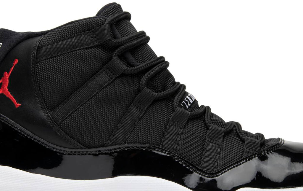 Released in December, the Jordan 11 Retro Playoffs (2012) brings back the famous black/red colorway to the Jordan 11 silhouette. The design features a black mesh upper with black patent leather overlays, red Jumpman accents, a white midsole, and a translucent red outsole. Originally released in 1995, the sneaker was retro’d in 2001 and in 2008 alongside an Air Jordan 12 as part of the ‘Collezione Pack’.