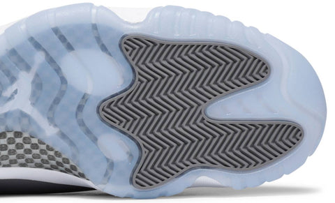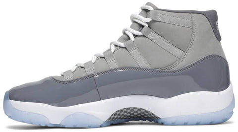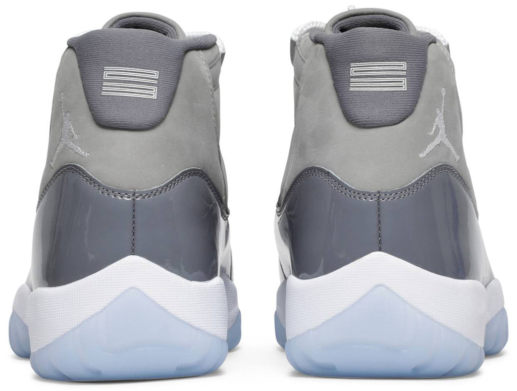 The 2021 edition of the Air Jordan 11 Retro ‘Cool Grey’ brings back a colorway first released in 2001 and retroed again in 2010. Celebrating the 20th anniversary of the original launch, the mid-top build is faithful to the original, featuring a nubuck upper with tonal webbing lace loops and a shiny patent leather overlay, all rendered in tones of Medium and Cool Grey. A white Jumpman logo is embroidered on the lateral ankle, while a stylized ‘23’ decorates the heel notch. Lightweight cushioning is provided by a full-length Air-sole unit housed within a white Phylon midsole. Underfoot, a translucent outsole reveals a carbon fiber spring plate for enhanced on-court responsiveness.