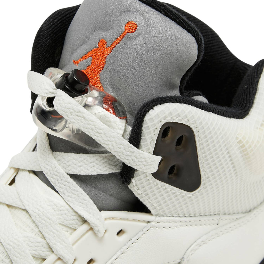 Like other Shattered Backboard releases, white, orange, and black are prominent in the design's color-blocking. Instead of utilizing signature Jordan 5 netted inserts on the quarter and tongue, the Shattered Backboard opts for a translucent mesh that also appears on the collar. Metallic shark-tooth details on the midsole and a semi-translucent outsole add the finishing touches.