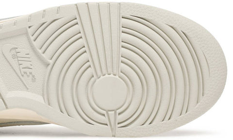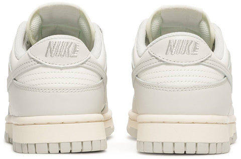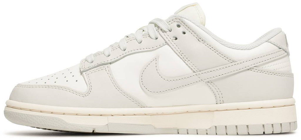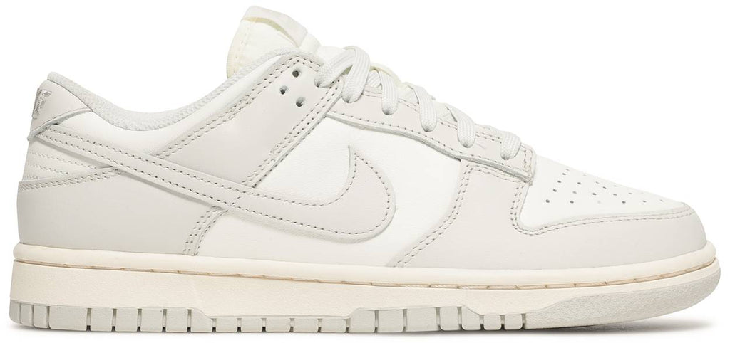 The women's Nike Dunk Low Sail Light Bone (W) features a Sail leather upper with Light Bone overlays and Swooshes. From there, matching woven Nike Air tongue labels and soled complete the design.